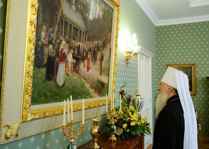 3 сентября 2014 года Святейший Патриарх Московский и всея Руси Кирилл в сопровождении управляющего делами Московской Патриархии митрополита Санкт-Петербургского и Ладожского Варсонофия, руководителя Административного секретариата Московской Патриархии епископа Солнечногорского Сергия и председателя Синодального информационного отдела В.Р. Легойды прибыл во Псков. В аэропорту делегацию, в частности, встречали митрополит Псковский и Великолукский Евсевий, временно исполняющий обязанности губернатора Псковской области А.А. Турчак, духовенство Псковской епархии.