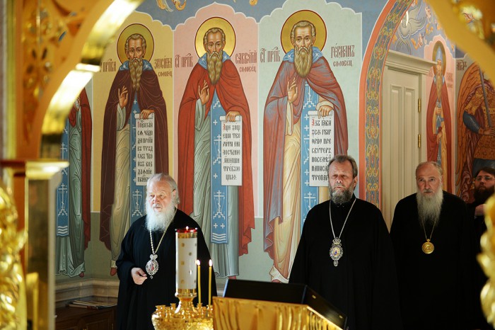 18 июля 2014 года Его Святейшество возглавил Божественную литургию в сослужении 177 архиереев и собора духовенства Русской Православной Церкви, а также гостей из разных частей света. Делегации Православных Церквей возглавляли: митрополит Шведский и Скандинавский Клеопа (Константинопольский Патриархат), представитель Патриарха Александрийского при Патриархе Московском и всея Руси митрополит Киринский Афанасий; митрополит Тирский и Сидонский Илия (Антиохийский Патриархат), митрополит Вострский Тимофей (Иерусалимский Патриархат), митрополит Зугдидский и Цаишский Герасим (Грузинская Православная Церковь), епископ Банатский Никанор (Сербская Православная Церковь), митрополит Центральной и Западной Европы Серафим (Румынский Патриархат), митрополит Западной и Средней Европы Антоний (Болгарский Патриархат), епископ Месаорийский Григорий (Кипрская Православная Церковь), митрополит Паронаксийский Каллиник (Элладская Православная Церковь), митрополит Аргирокастрский Димитрий (Албанская Православная Церковь), архиепископ Пражский Иоаким (Православная Церковь Чешских земель и Словакии), епископ Филадельфийский и Восточно-Пенсильванский Марк (Православная Церковь в Америке).