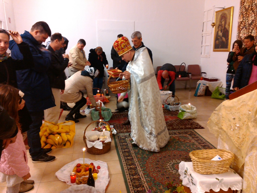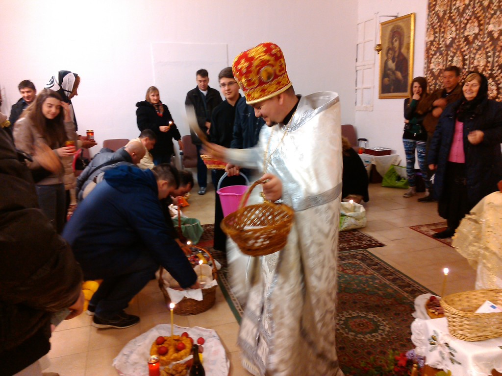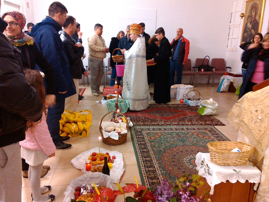 Iar pentru ca sărbătoarea să fie deplină, la final după citirea Pastoralei ÎPS Mitropolit Vladimir, părinții slujitori au sfințit prinoasele și au felicitat credincioșii cu Învierea Domnului și cu primul Paște sărbătorit în biserica din Reggio Emilia.