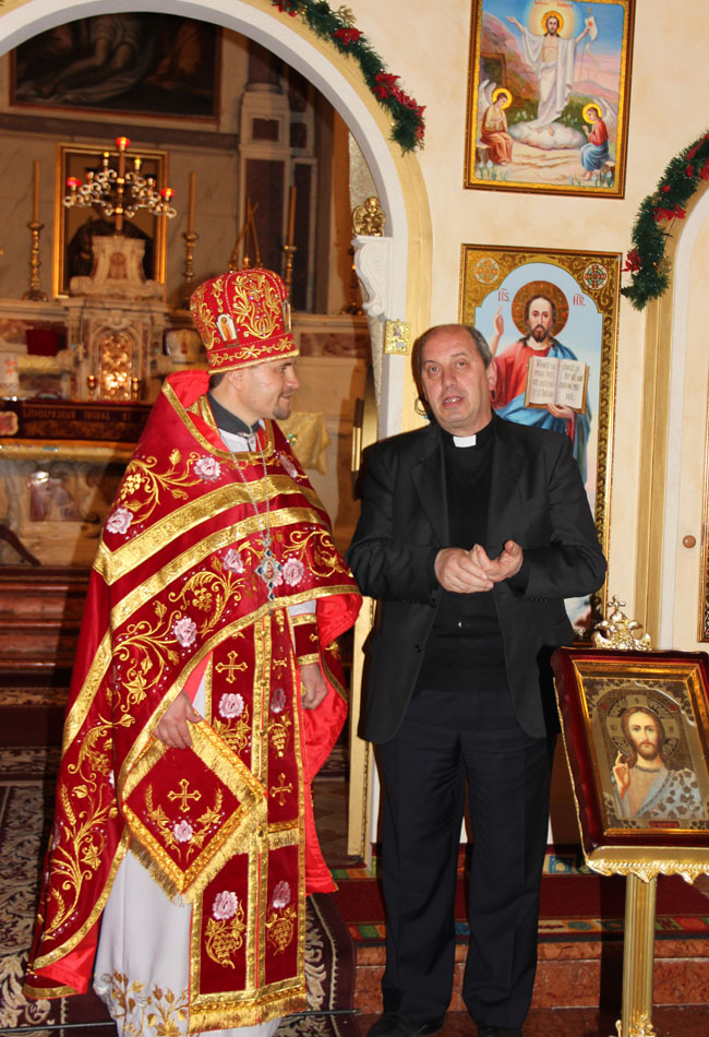 La rândul său părintele Veniamin a mulțumit prelaților catolici pentru susținerea pe care a primit-o din partea episcopiei romano-catolice de Vicenza pe parcursul acestor 10 ani, totodată urându-le ca Lumina Învierii lui Hristos și dragostea frățească să nu apună în relațiile bilaterale.